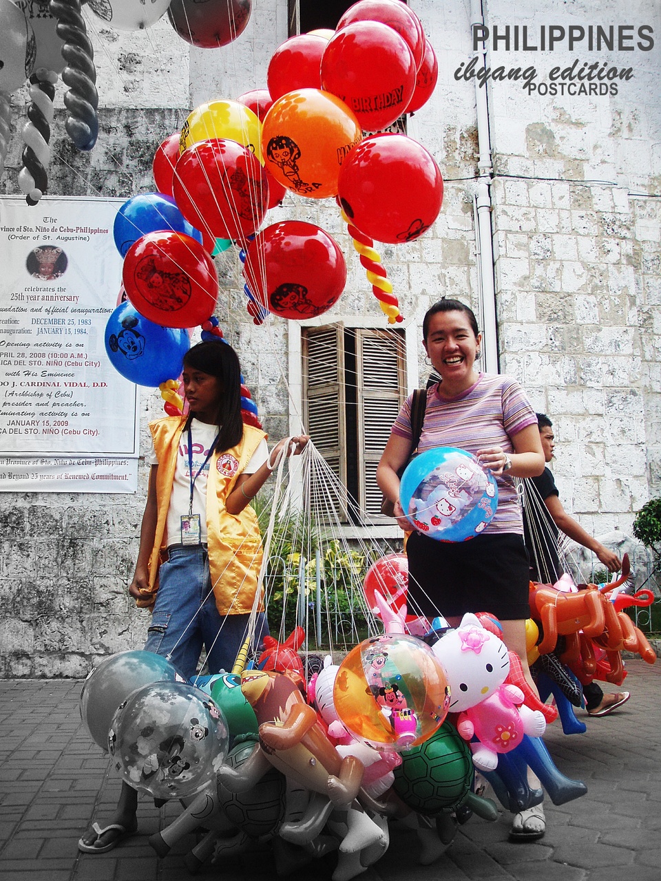 The basilica, like other roman catholic churches, has a number of vendors one can have a bargain with over souvenirs and other fun stuffs. Above is my Ate having fun with the colored balloons outstanding the whole crowd of vendors.