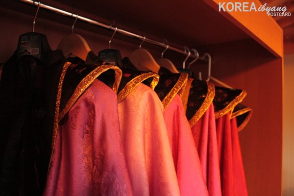 I believe I wore Princess Cheon Myeong’s pink and blue hanbok, with an embroidered patterns on black belt above my waist and some gold ornaments hanging from it.