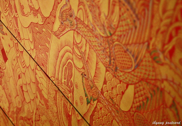A wall art displayed in Suvarnabhumi Airport. With defined strokes of lines that depicts a scene of Thai culture, this wall art was just one of many artworks of Bangkok has to offer.
