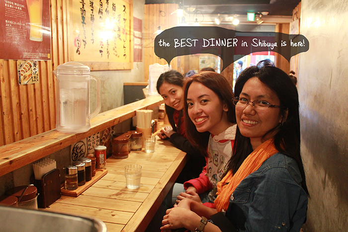 We had a dinner in a small restaurant somewhere in Shibuya. It was the best dinner I had in Japan. I have yet to experience the meal that would be better than what we had then. We chose our meals and paid in a vending machine placed at the entrance. We only bought 2 meals and gyoza because we already knew some food tricks about Japanese meals, for example, a meal is usually “too much for one person but too little for two persons”. Haha.