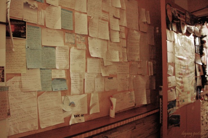 What you see in the photo are the letters of guests who stayed in the Taipei’s Backpackers. Although there are a number of notes written in guests’ native languages, much of them are letters of gratitude and requests for visits from hosts to their countries.