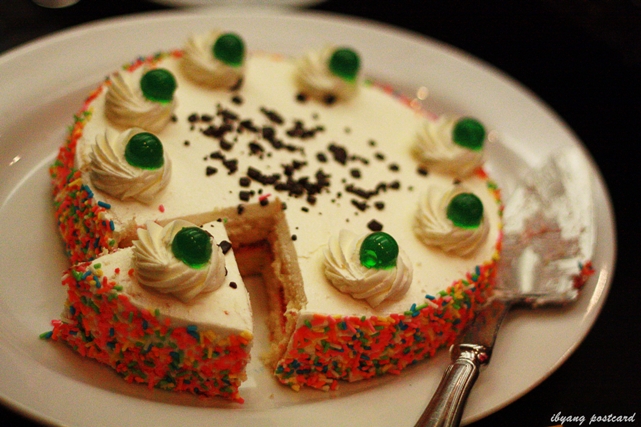 I had one plate each for rice and ulam, deserts (cakes and brownies) and appetizers (soup, fries, sushi). But I wasn’t able to take a piece of this sprinkled cake because it was only put on the long buffet center table when everyone was already eating and full. Argh! Sometimes, you just lose yourself before an abundance of foooooooods!
