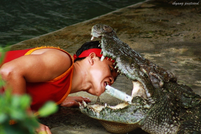 Goodness! You have to be friends with the crocodile before you can put your head inside its big mouth.